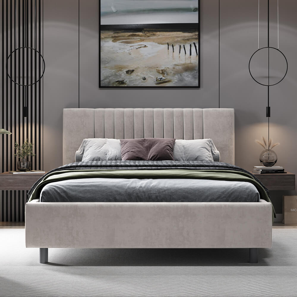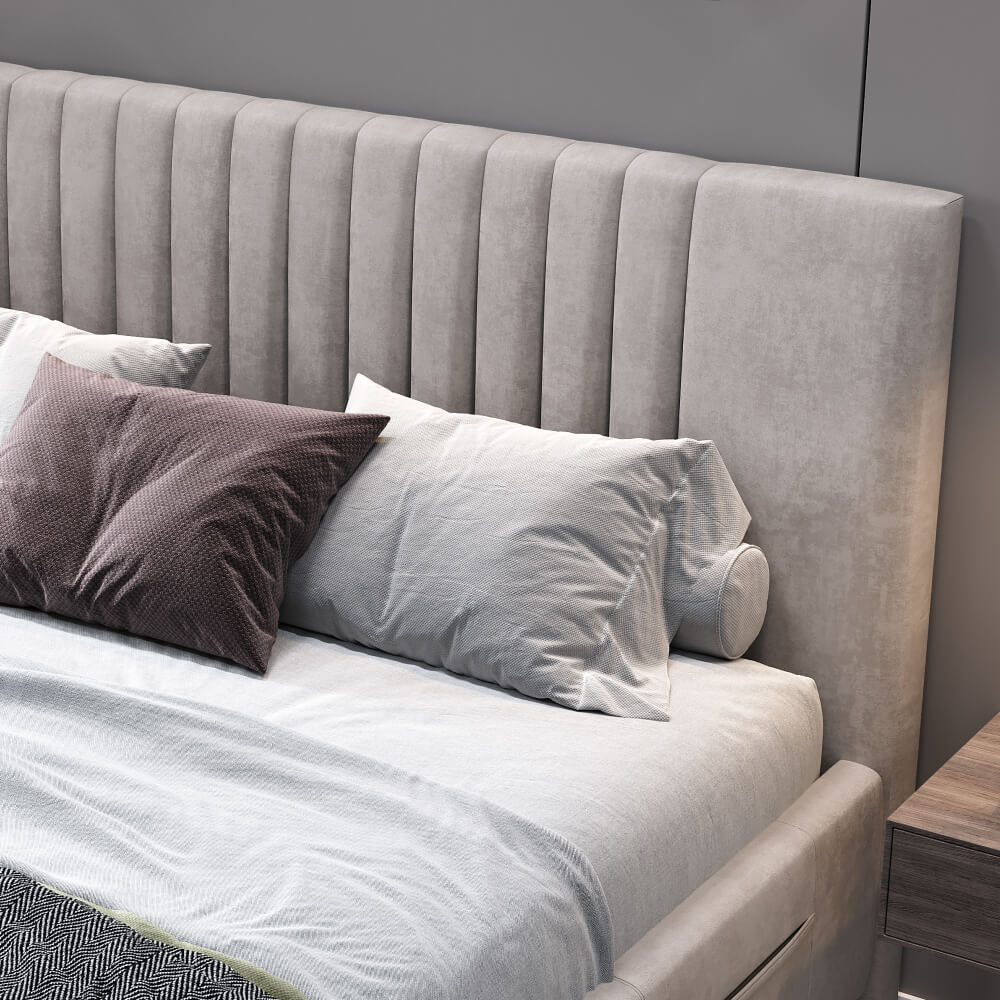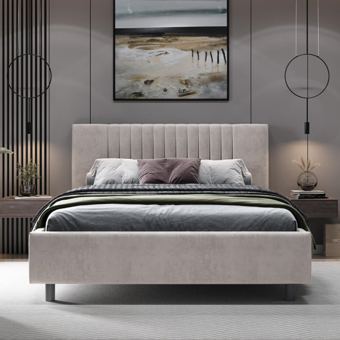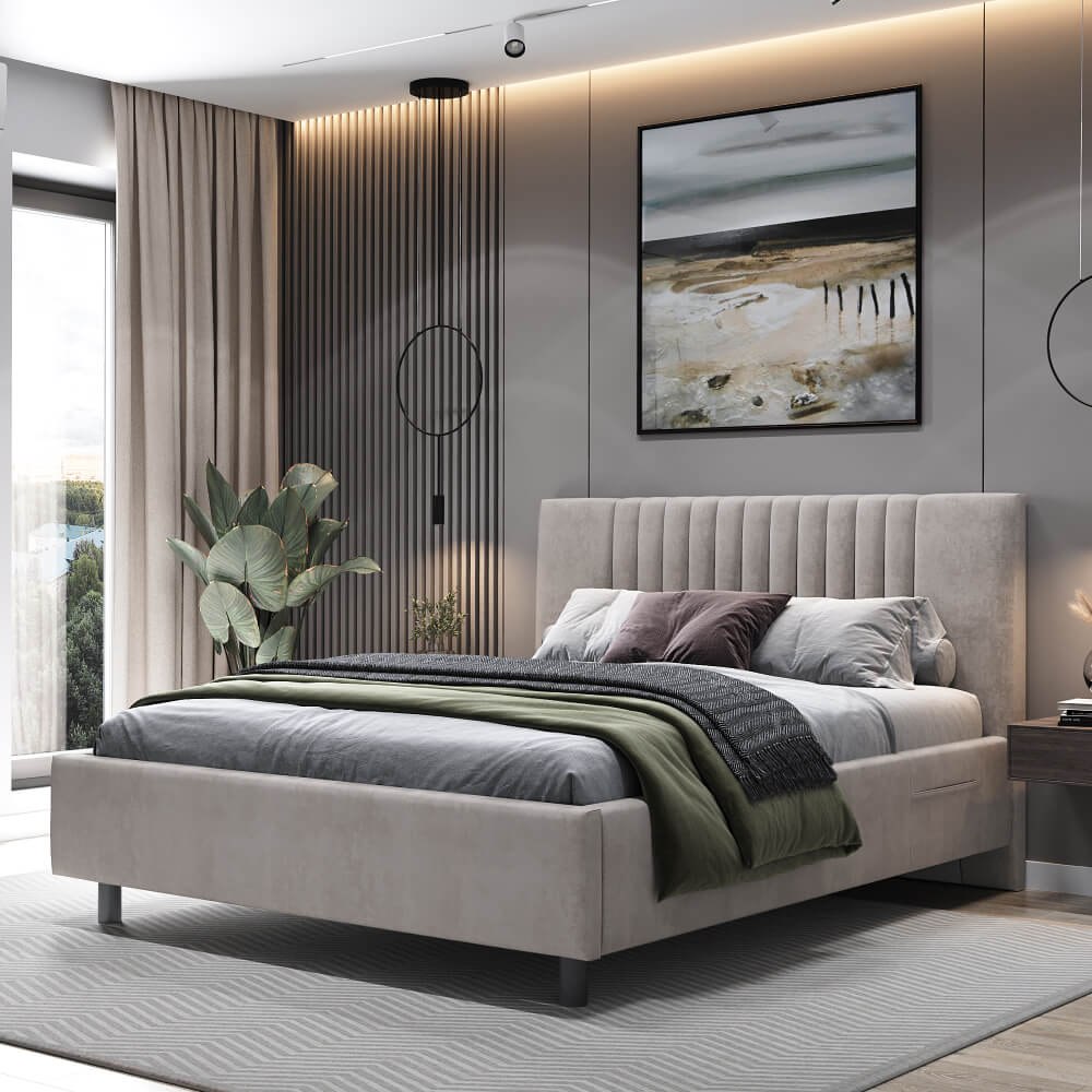 • Дизайн с вертикальными линиями изголовья, разбавят монотонность интерьера.