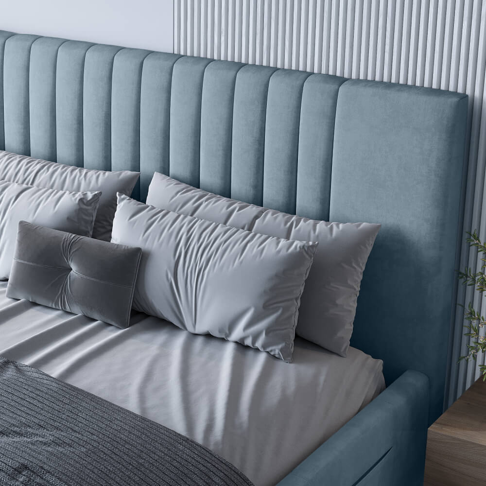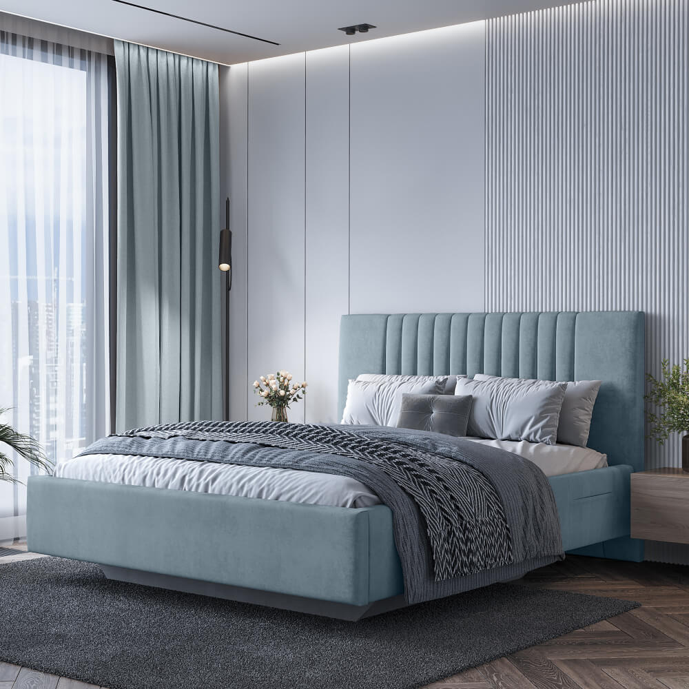 • Дизайн с вертикальными линиями изголовья, разбавят монотонность интерьера.