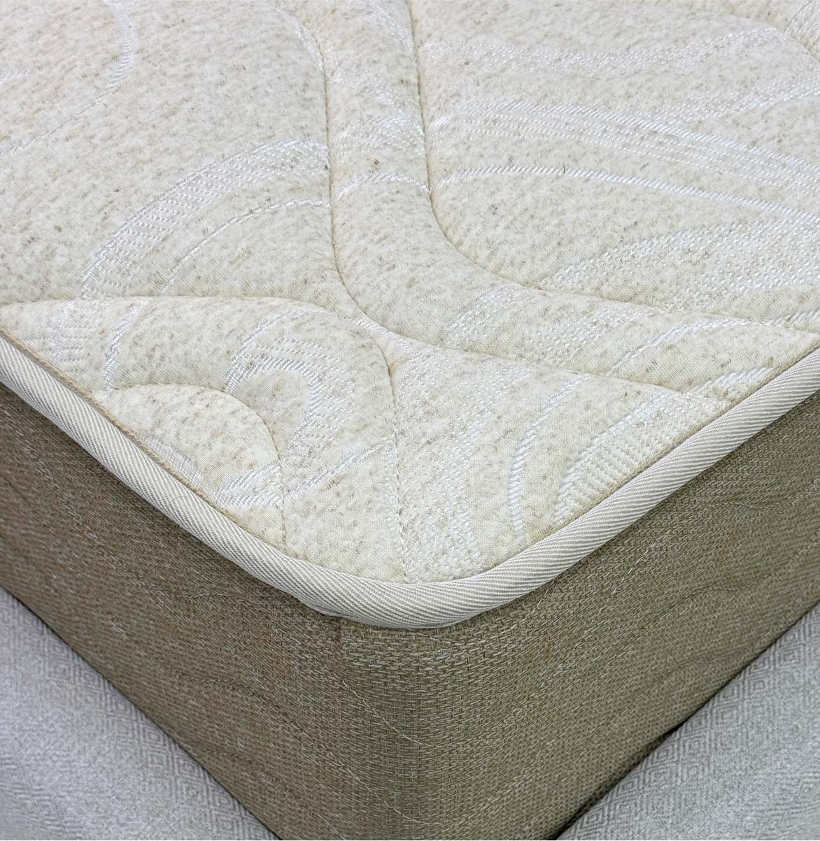 Термовойлок - Нетканый материал, состоящий из 45% льна, 45% джута и 10% синтетических волокон, получаемый путем спекания по специальной технологии. Материал высокой плотности. Используется для защиты мягких настилов матраса от воздействия пружинного блока, равномерно распределяет нагрузку по всему матрасу, придает дополнительную жесткость, упругость и долговечность.